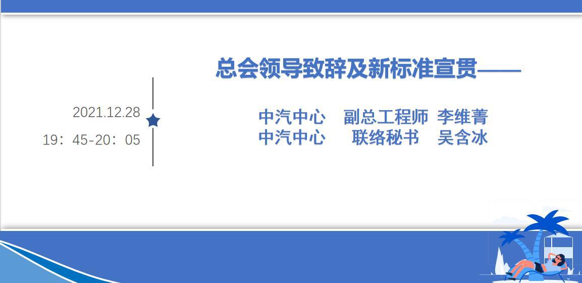 中汽中心汽车标准化研究所副总师李维菁作了重要讲话。李总宣贯了十四五标准规划纲要,提出人人要加快转变和认真贯彻,在新能源汽车、智能网联汽车、无人驾驶的变革时代,每一个委员加强标准学习和思考,并落实到工作中;李总师同时分享了汽标委成果,结合双碳目标,对2021年标准化工作要点作指导,勉励大家携手同行,积极推进标准化工作,特别是国际标准化方面,继续引领本行业的发展。