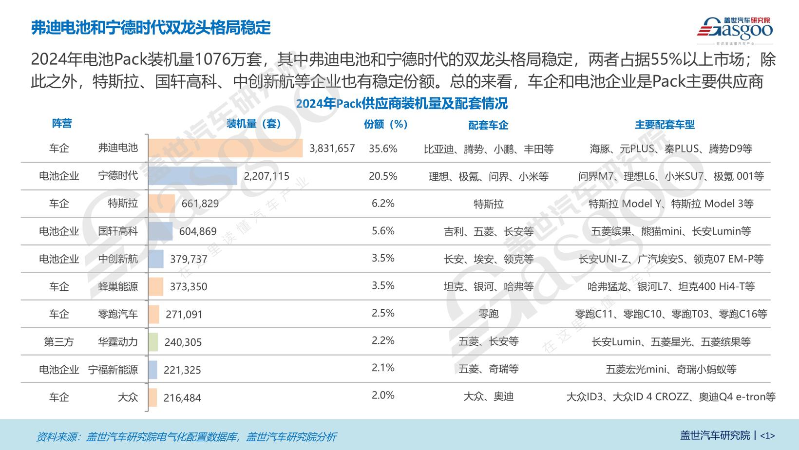 总体来看,车企和电池企业共同构成Pack供应的核心力量,市场呈现“双极主导、多元并存”的竞争态势,技术能力、成本控制与供应链整合仍是企业突围的关键。