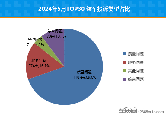 据乘联会提供的全国汽车产销数据显示,2024年5月份国内轿车市场累计零售销量78.7万辆,环比上涨10.7%,同比下降7.7%。同期,车质网受理车主针对轿车的有效投诉7,192宗,环比下降8.8%,同比下降19.8%。去除投诉人自愿申请撤诉的信息后,2024年5月TOP30轿车销量投诉量排名如下: