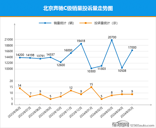 进入2024年后,奔驰C级的销量走势充满起伏,忽高忽低,但始终保持在万辆之上。5月份,奔驰C级销量实现触底反弹,17,000辆的成绩达到了近一年来的第三高点。据乘联会数据统计,今年1-5月,奔驰C级累计销量69,811辆,较去年同期上涨23.1%,与老对手宝马3系和奥迪A4L相比处于领先地位。在如今车市如此“内卷”的情况下,能保持这样的成绩实属不易,当然这也与其终端优惠不断加码有关。近一年来,奔驰C级已经进行了3次改款,今年5月份这次改款,价格再次进行了官降。相比于销量的忽高忽低,奔驰C级的月投诉表现要相对稳定,特别是近四个月,投诉量均保持在个位数,短期口碑表现值得肯定。从其5月份的投诉销量比数值变化来看,已降至个位数,投诉销量比表现与4月份相比有所进步。短期来看,受市场大环境影响,奔驰C级的销量走势或将保持震荡上行的势头,在豪华中型车市场持续领跑。