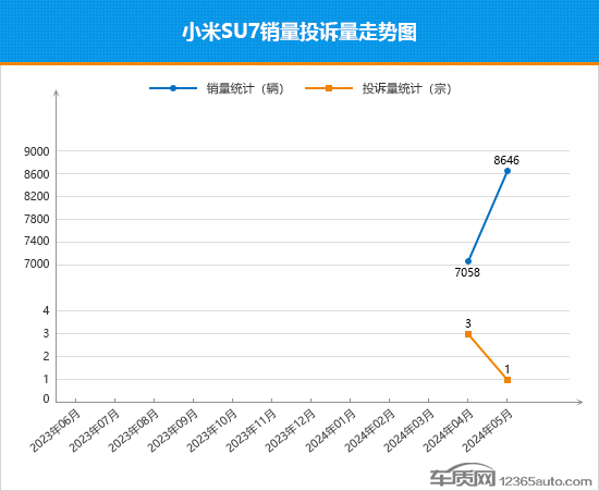 要问2024年哪款车型最火,那肯定非小米SU7莫属,这一点从小米汽车官方公布的信息便可见一斑:首月锁单量为88,063辆,2024年保底交付10万辆。虽然这个数据看起来没那么亮眼,但要知道,当初蔚来从0-10万辆足足用了3年时间。虽然是跨界造车,但小米汽车在雷军的领导下,俨然已成为整个汽车市场的现象级品牌。5月份,小米SU7销量突破8,000辆关口,环比上涨22.5%,距离破万再进一步。相比于销量,小米SU7的月投诉表现就没那么喜人了,交付首月和次月连续出现投诉,这在过往其他全新车型上是非常罕见的。据车质网数据显示,小米SU7的投诉问题大多集中在服务问题,但质量问题也有所涉及,有车主反馈车辆正常慢速行驶时,无故紧急制动,险些酿成追尾事故。按照官方客服的回复,这种情况属于AEB误触发。尽管现阶段小米SU7的市场走势强劲,但背后暴露出的服务和质量问题却不能忽视,毕竟作为一款全新车型,口碑好坏对于销量的影响还是蛮大的。