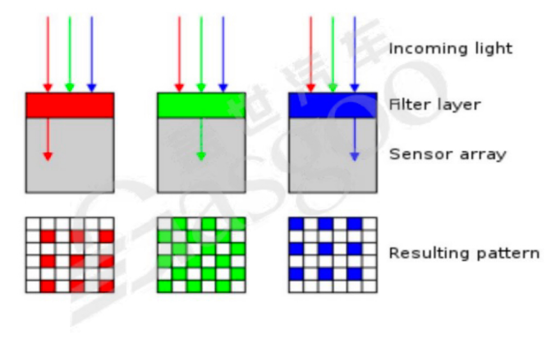 在彩色图像采集过程中,为获取RGB三种颜色信息,通常采用Bayer格式滤镜。Bayer滤镜在一块滤镜上设置不同颜色,每个像素点只能感知一种颜色 。因此,需要进行插值运算来获取每个像素点的RGB值,这个过程称为去马赛克。去马赛克时,根据像素点周围相同颜色的像素进行平均计算,以补齐缺失的颜色分量。例如,当绿色像素点缺失蓝色和红色分量时,将周围最近的两个相同颜色像素做平均来获取 。Bayer格式图像在输出时,由于每个像素只有一个对应通道的值,所以是单通道灰度图,需经过差值补齐和白平衡处理,才能输出3通道彩色图像。
